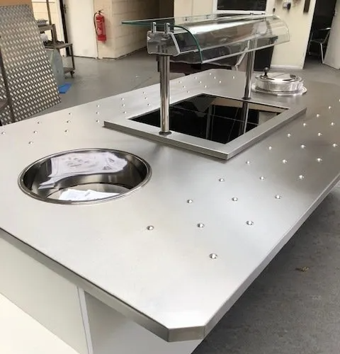 Our food service counters are tailored to the exact needs of your commercial kitchens, canteens and food preparation areas. All of our counters are engineered for durability, hygiene and to maximise the efficiency of your workflow. Utilizing high-grade Stainless Steel, our counters are built to withstand the daily pressure of commercial use.
