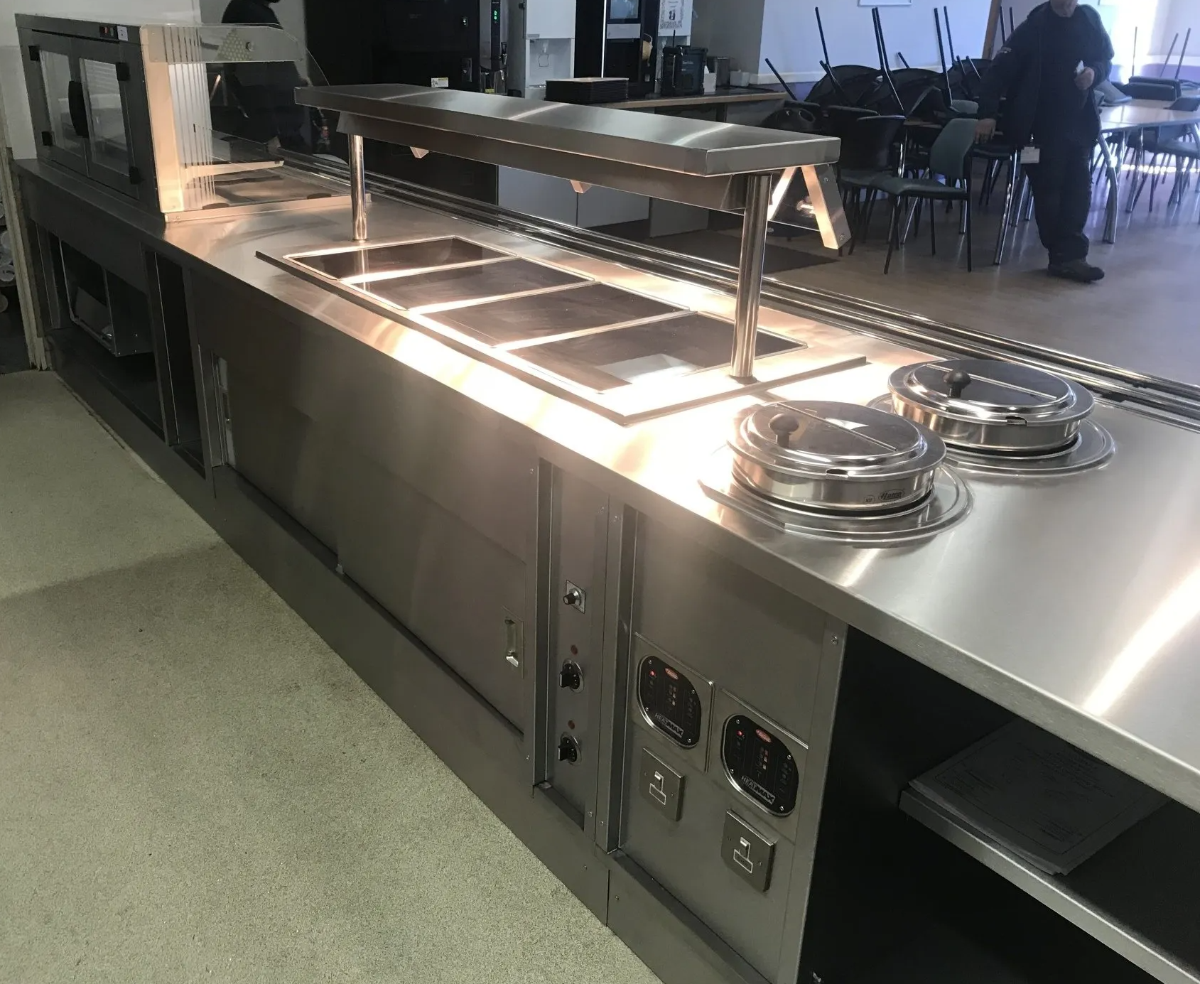 Weather you require hot or ambient counters, servery stations, prep counters or bespoke display units, our team ensures every unit is precision-built for performance and easy maintenance. We can integrate features including but not limited to; heated gantries, chilled wells, sneeze screens and storage solutions. All designed to streamline food service operations and meet food safety standards.